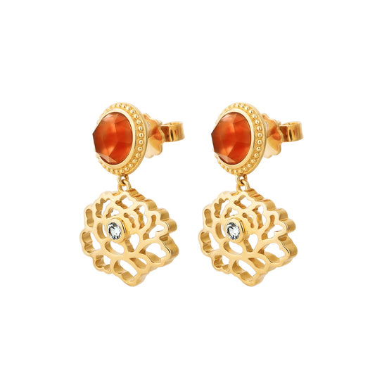 Majestic Tang Peony Earrings Gold Vermeil with Orange Carnelian